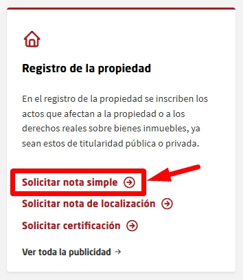Dentro de la web oficial, haz clic en «Solicitar nota simple».