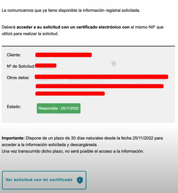 Ya has realizado todos los pasos para solicitar la nota simple, ahora solo queda esperar a recibir en tu email la nota simple y poder descargarla.